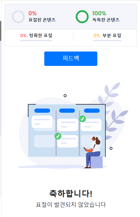 - 무료 표절 검사 도구는 유료 서비스에 비해 정확도가 낮을 수 있으므로, 결과를 100% 신뢰하기보다는 참고 자료로 활용하는 것이 좋습니다.