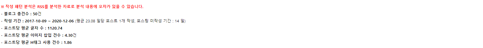블로그유틸24의 블로그 작성 패턴을 사용하면 이 부분을 쉽게 확인할 수 있어 블로그 품질 관리에 도움이 된다.