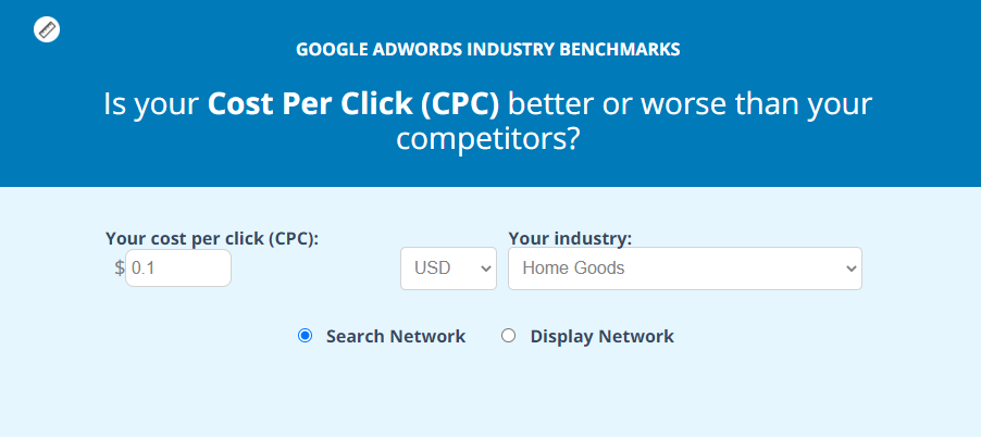 wordstream에는 재밌는 툴도 있다. CPC 비교 툴인데, 내가 사용하고 있는 CPC를 비교했을 때 어느 정도 낮은지에 대해서도 알려준다.
