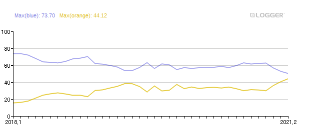 다만 네이버 블로그의 검색 점유율도 점점 줄어들고 있다. 아래 자료는 인터넷 트렌드에 나와 있는 자료인데, 자료를 보면 구글과 네이버의 점유율이 거의 비슷해졌다.