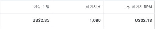 ※ RPM과 예상 수입과의 관계를 쉽게 확인가능하도록 페이지뷰를 1080으로 세팅