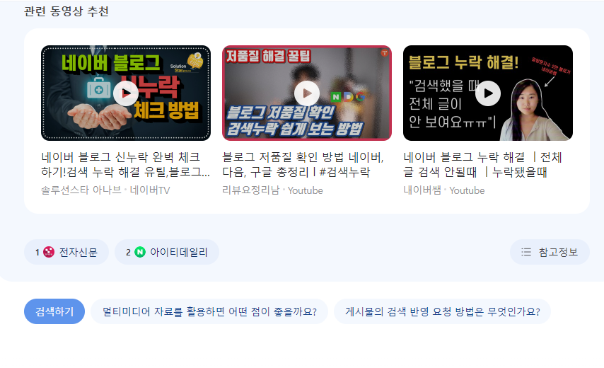 웹사이트/블로그가 2개 정도만 표시된다는게 중요합니다.