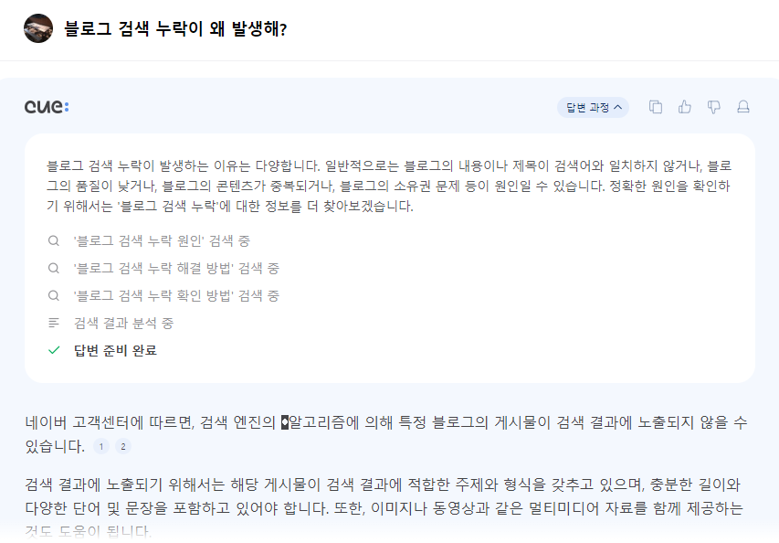 검색 요청자는 이 내용으로 Cue:의 검색 결과를 보완할 수 있게 됩니다.